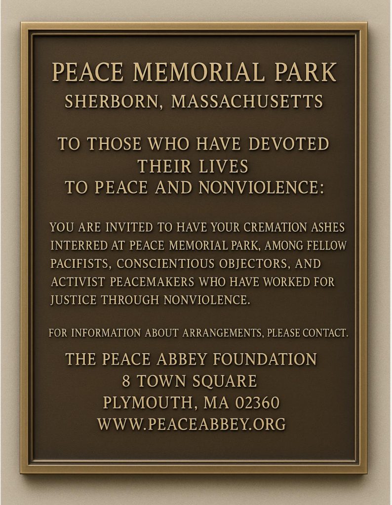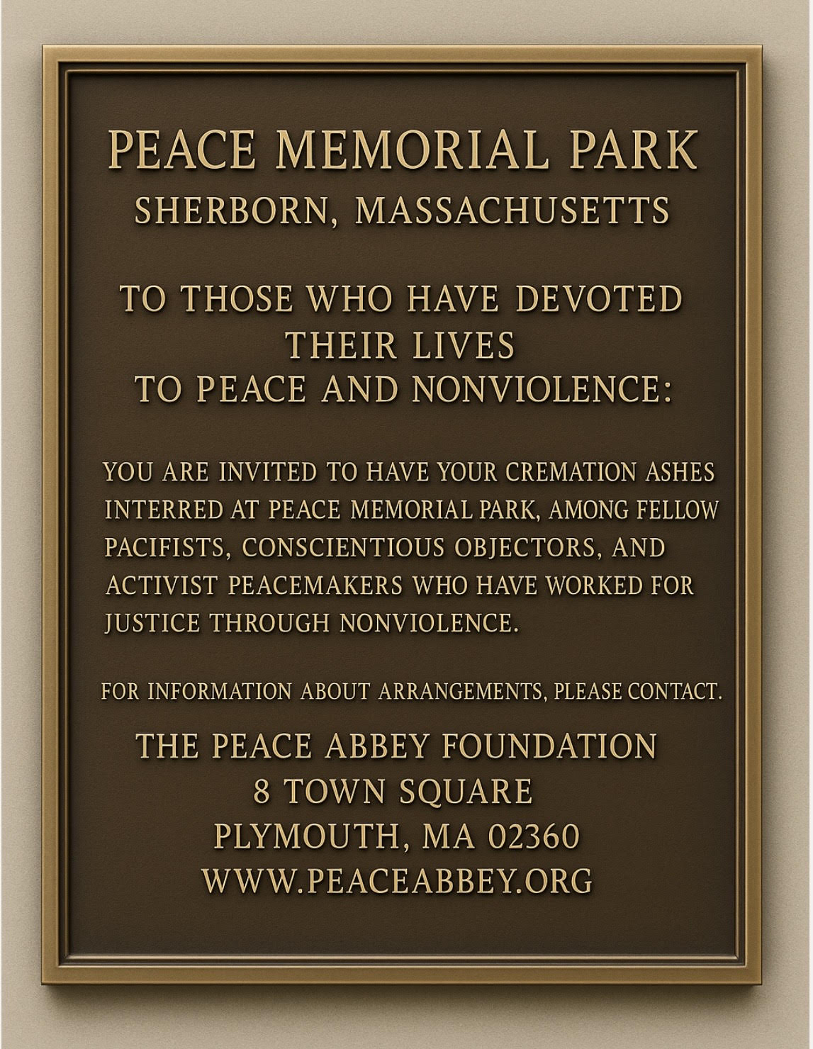 LAND ACKNOWLEDGMENT AND REPARATION: We formally acknowledge that The Peace Memorial Park in Sherborn, MA, is situated on the traditional homelands of the Massachusett people. Recognizing the Indigenous communities whose lands we inhabit is important, but it is even more imperative to commit to meaningful reparations. We have taken a significant step in this direction through the establishment of the Native Land Reparation Pledge. We invite you to join us in this vital initiative. Let us remember that actions speak louder than words!
