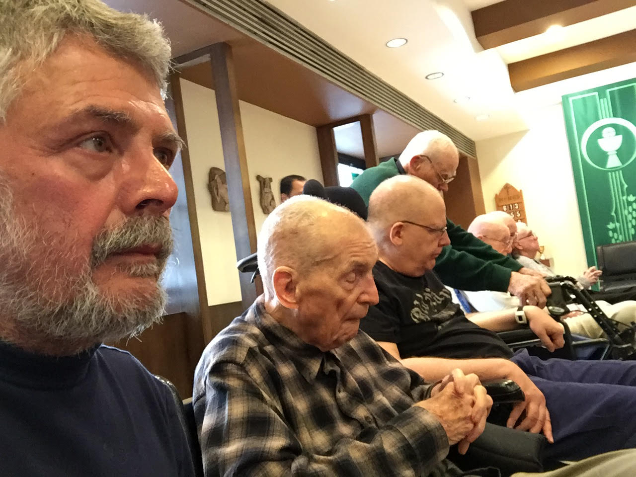 Daniel Berrigan attends Mass at Fordham Jesuit Home with Lewis Randa.
