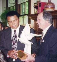Muslim, humanitarian, anti-war activist, and former Heavyweight Boxing Champion of the World for his commitment to peacemaking and his leadership as a conscientious objector during the Vietnam War. Read More