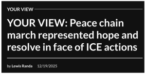The voices that advocate war and call for a violent solution to every conflict may appear to be the loudest just now. But in every time of trial God raises up other voices, such as those of Sister Willie and her companions in the PeaceChain 18, to speak truth to power and to witness to the way of peace. We are richly blessed to have such people in our midst.